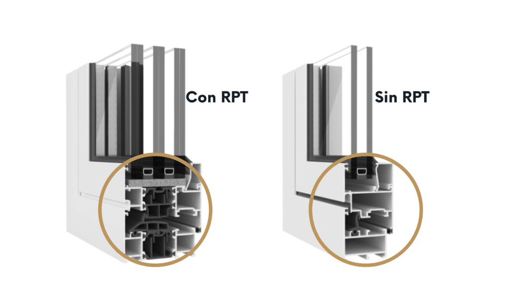 Para entender bien en que consiste cuando hablamos de ventanas de aluminio con RPT o rotura de puente térmico, significa introducir entre las capas del perfil de aluminio un material plástico para que evite la transmitancia térmica entre el frio o calor del exterior y la tempertura interior de la vivienda.